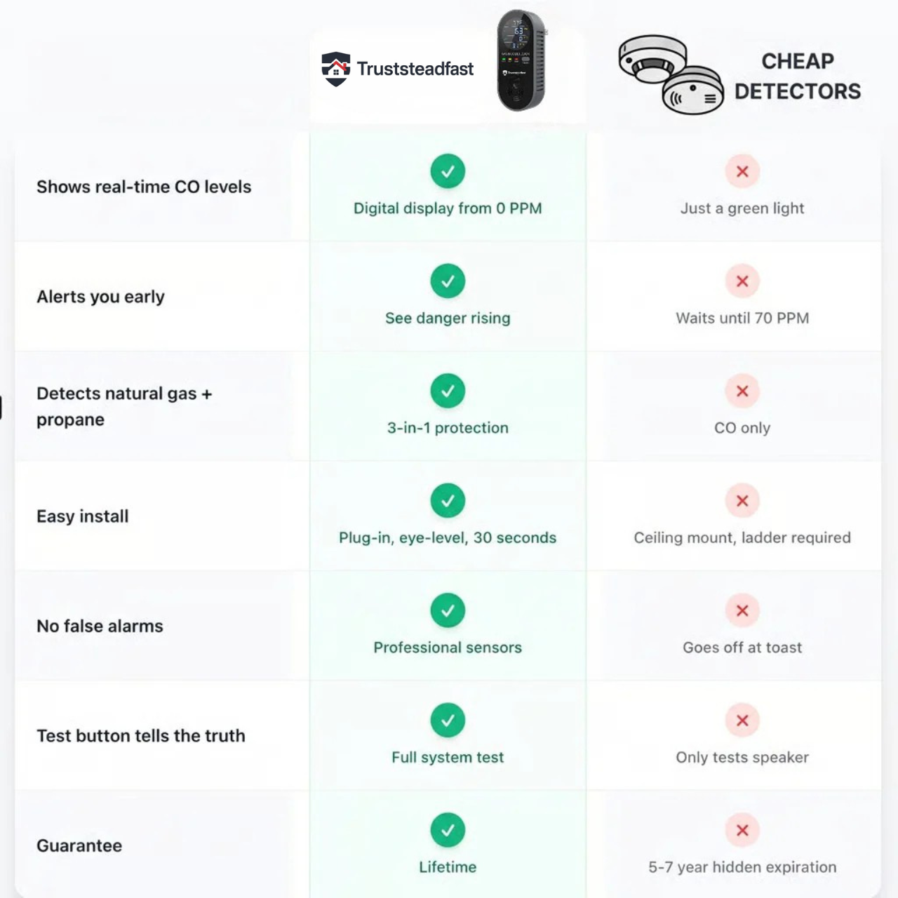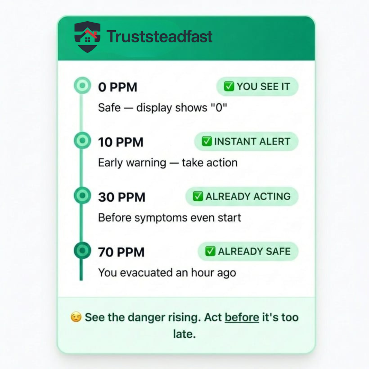 See Danger at 0 PPM — Not 70 PPM like cheap detectors that wait until it's too late
